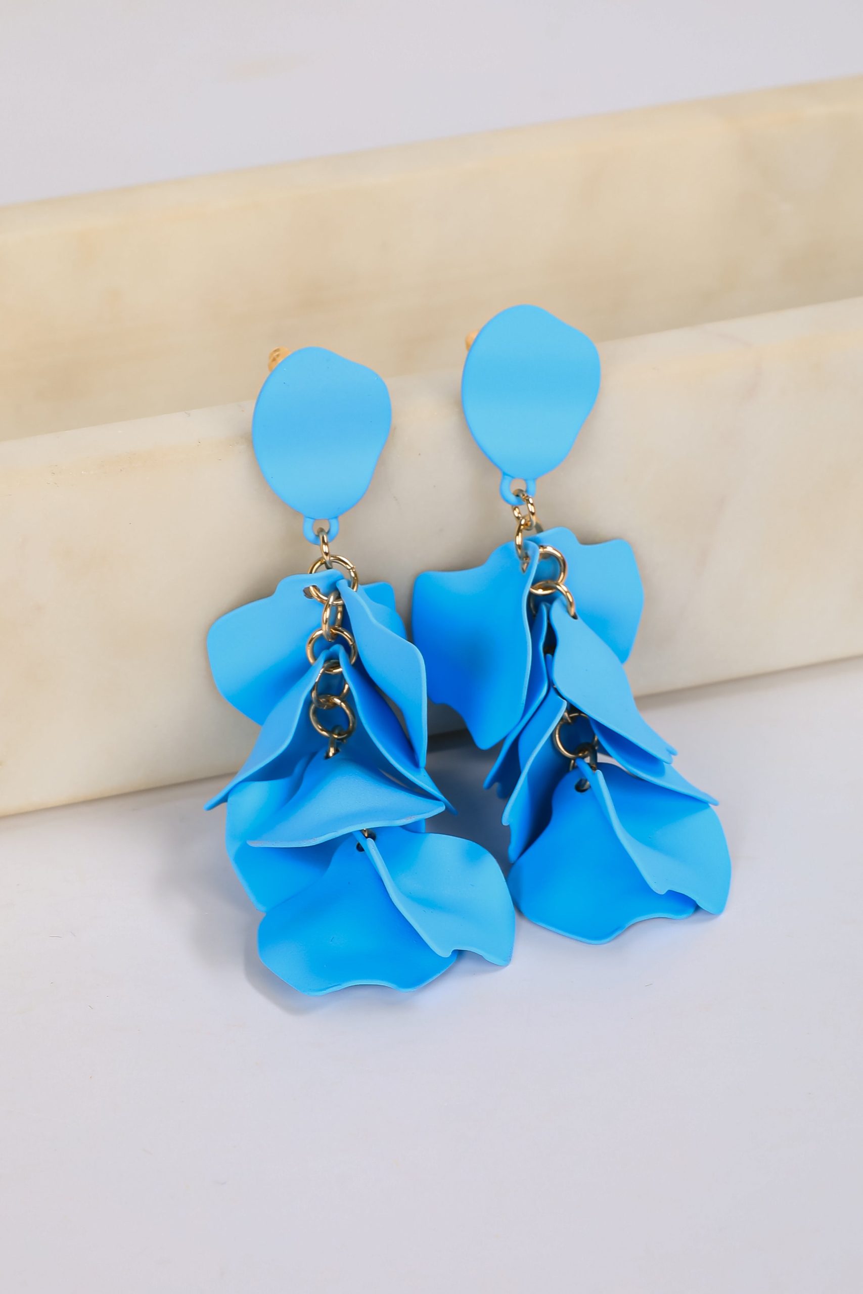 The Dorothy Blue Statement Earrings came to stun! These cute earrings feature a flower petal drop design with gold detailing + a stud post back! Style the Dorothy Earrings with any outfit to instantly upgrade your vacay look! Petals Gold Detailing Stud Post BackOne Size | Length 2.75”