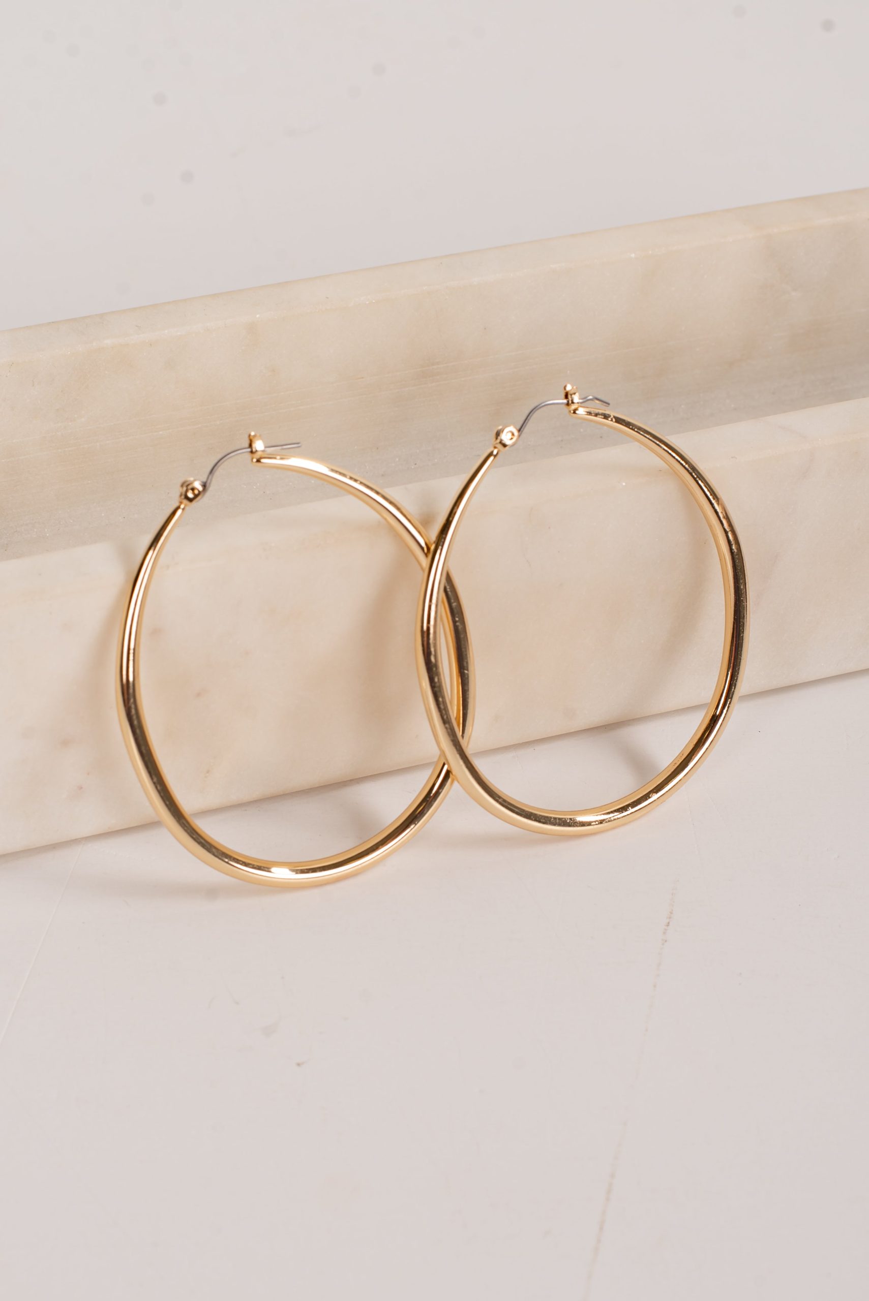 Stylish yet unique, the Gracie Gold Oval Hoop Earrings will have everyone lining up to give you a compliment about your accessorizing skills! These chic earrings feature a lever back with an oval hoop design. Style the Gracie Earrings with anything from dresses to denim for an elevated look! Gold Plated Oval Hoop Lever BackOne Size | Length 2.25”